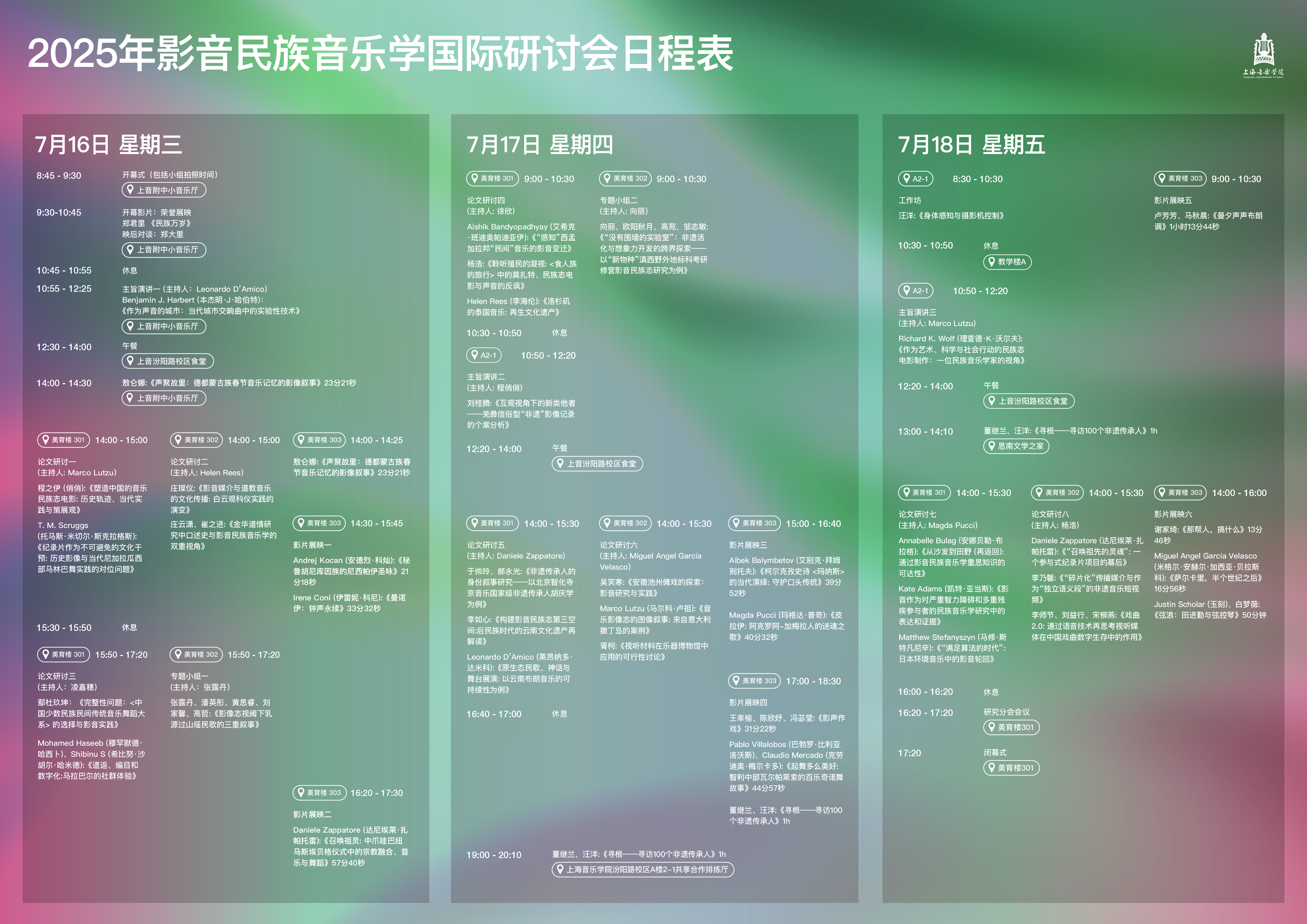 1. Concert Hall, Affiliated Music Middle School of SHCM: 9 Dongping Rd., Xuhui, Shanghai.