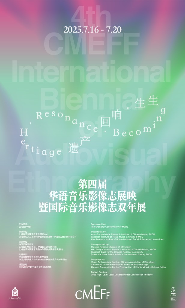 The 4th Chinese Musics Ethnographic Film Festival (CMEFF) will be held in Shanghai from July 16–20. Hosted by the Shanghai Conservatory of Music, the festival will collaborate with multiple screening venues across the city.